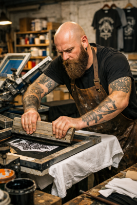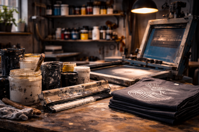 Der klassische Textildruck – insbesondere der Siebdruck – gilt bis heute als eines der hochwertigsten Verfahren zur Veredelung von Textilien. Dabei wird die Druckfarbe manuell oder halbautomatisch durch ein feinmaschiges Sieb auf das Textil aufgetragen.